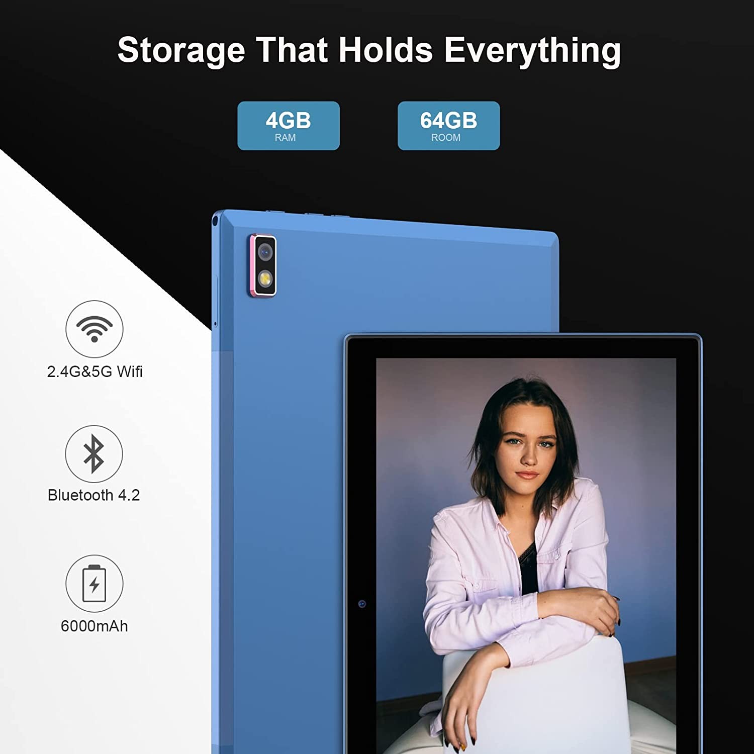 Android Tablet 10 Inch 2021, 64GB Storage, 5G WiFi Tablets with Android 10.0 OS, Camera, WiFi, Bluetooth, Google Certified, HD IPS Screen, Supports Microsoft Office Software – Blue