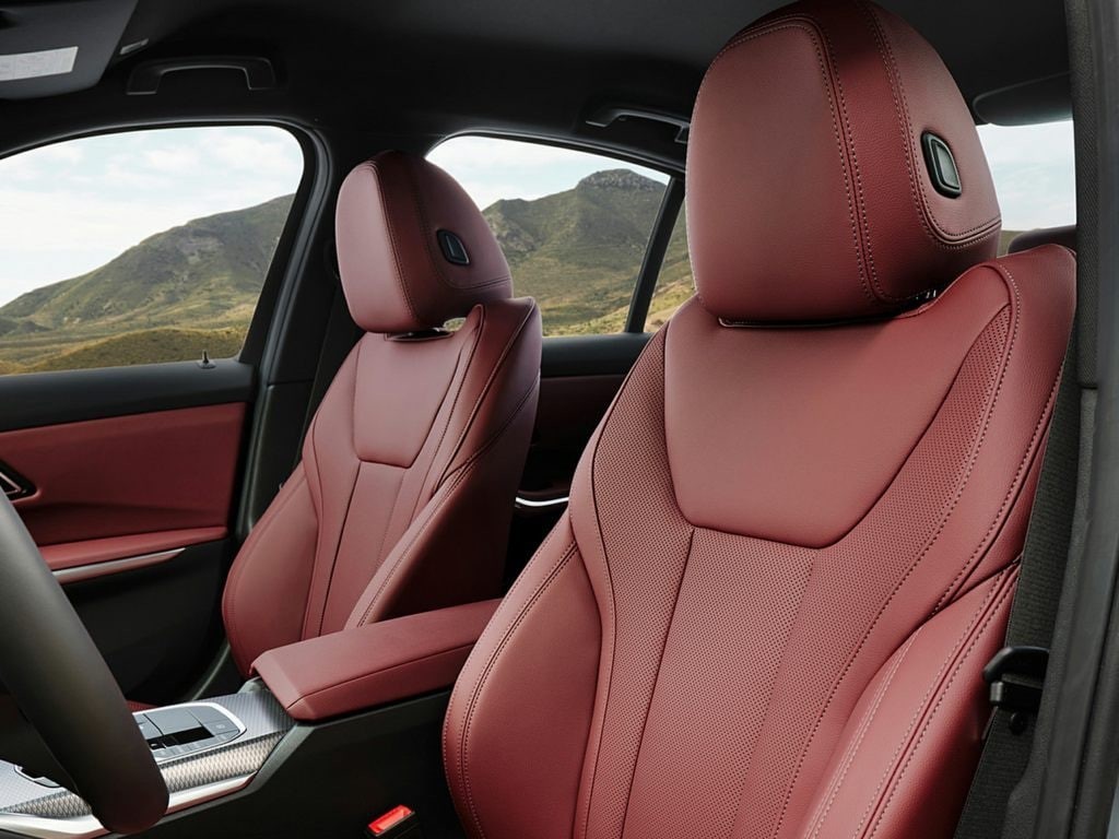 The 14.9-inch curved infotainment display is equipped with BMW's latest infotainment system and BMW navigation. It can be operated with natural voice recognition software, a touch screen, or a physical controller installed in the console, and it combines wireless Apple CarPlay and Android Auto with SiriusXM