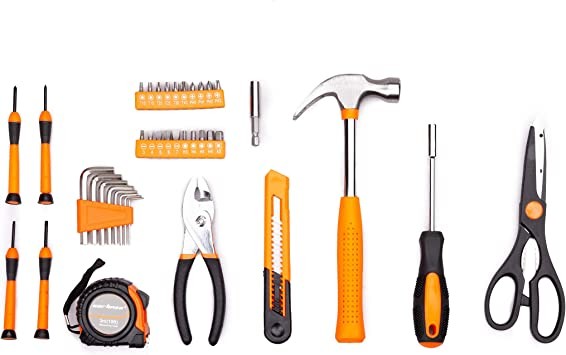 CARTMAN 39 Piece Tool Set Universal Household Hand Kit with Plastic Tool Box Organizer, Orange