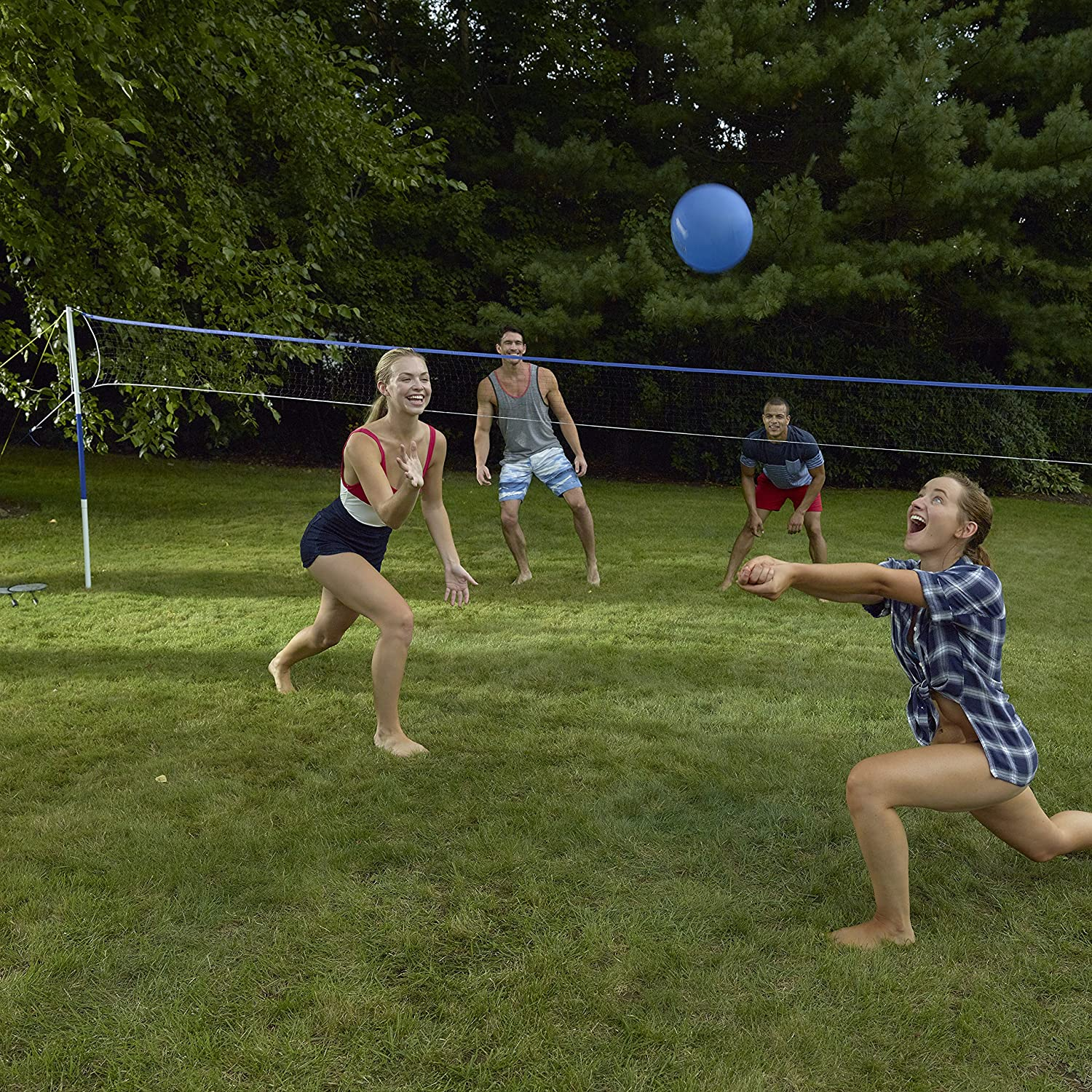 • BACKYARD OR BEACH FUN begins with this complete Badminton or Volleyball set