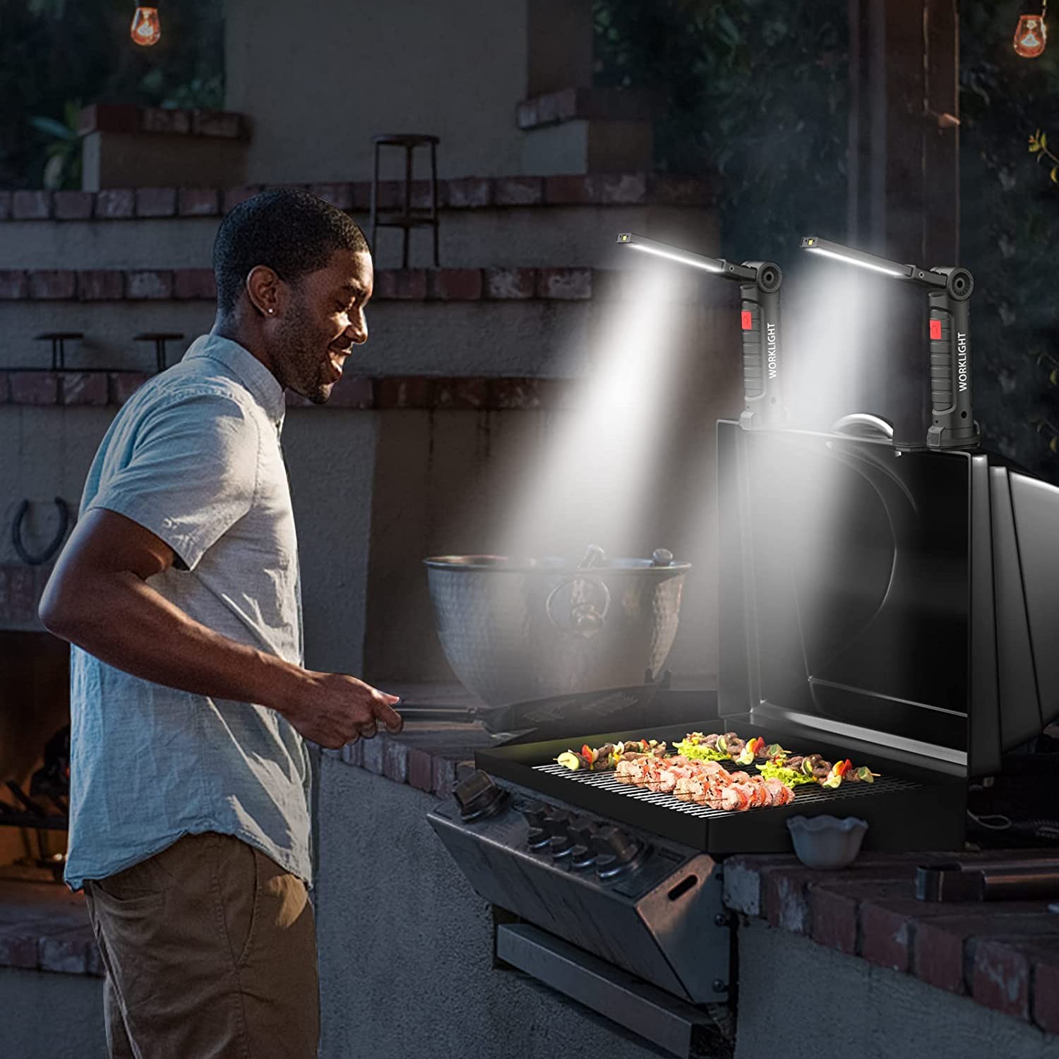 • 360 degree rotation, magnet base and hook: 360 degree rotation provides multi-angle lighting, magnet base and hook free your hands at night. It can be used for barbecues, camping, reading, car repairs and anything you want to do at night.