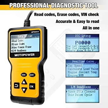 • ✅【Multi-Functions】- Practical Multi-Functions OBD2 code reader features built-in OBD2 DTC lookup library, which help you to determine the cause of the engine light, read code, erase code, view freeze frame, I/M ready, vehicle information, data flow, real-time curve, get vehicle speed information, calculate load value, engine coolant temperature, get engine speed.