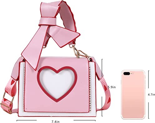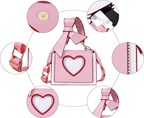 Design: This bow bag has an adjustable and detachable shoulder strap and can be used as a shoulder bag/purse/crossbody bag. There is a heart pattern in the middle. Very cute and shiny!