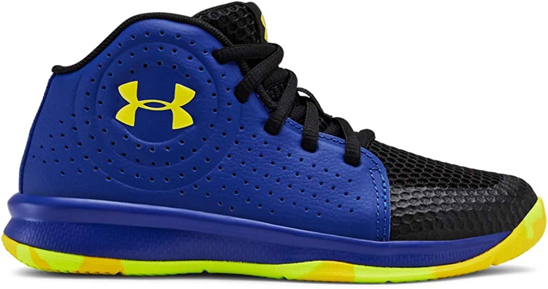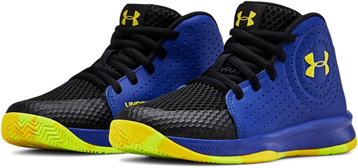 Under Armour unisex child Pre School Jet 2019 Basketball Shoe, Royal (402 Black, 3 Little Kid US